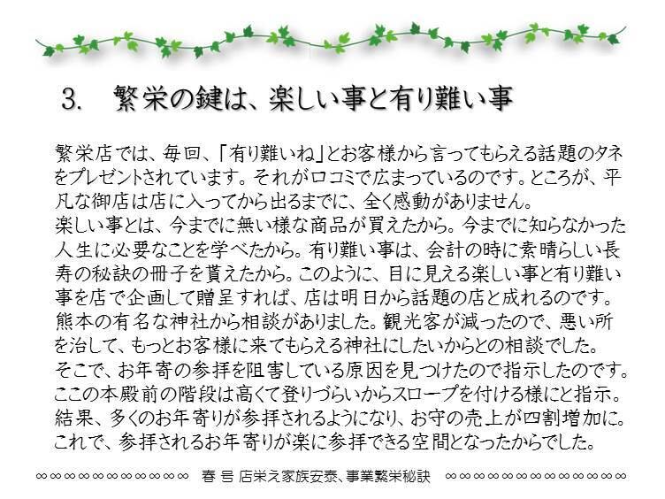 春の奇跡 「店栄え家族安泰、事業繁栄秘訣」 【 春の奇跡 1.pdf 】