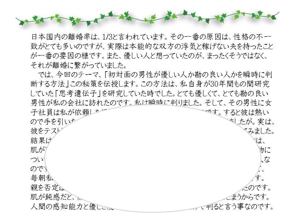 初対面男性の優しさと勘、瞬時判断方法 【 初対面男性の優しさと勘、瞬時判断方法.pdf 】