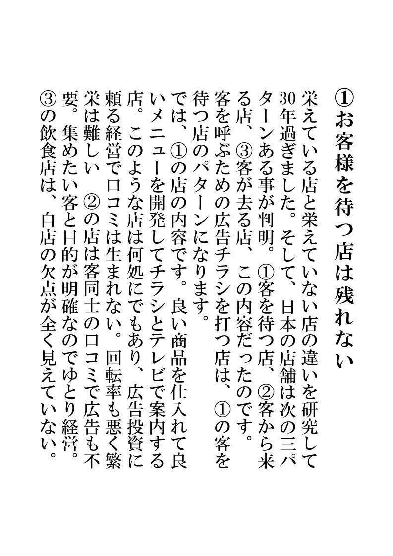 それができない店は、繁栄法を自ら探して回るしかありません。