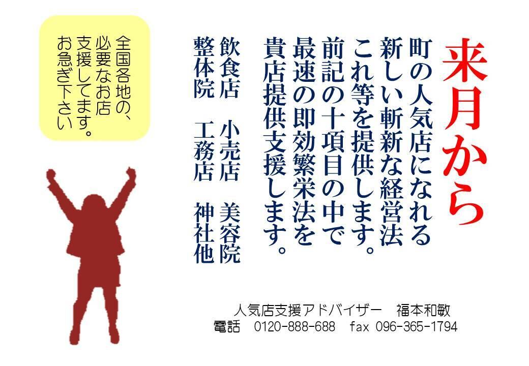 人気店支援アドバイザー 福本和敏 TEL 096-367-4934 FAX 096-365-1794 [email protected] 色紙